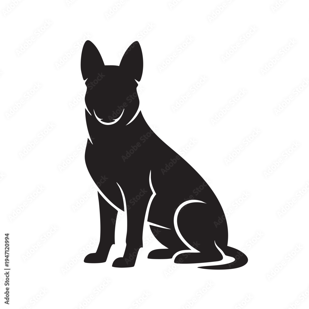 Silhouette of a Loyal Companion: A sleek, black silhouette captures the elegant form of a dog in a moment of calm attention, radiating grace and loyalty. #1947120994
