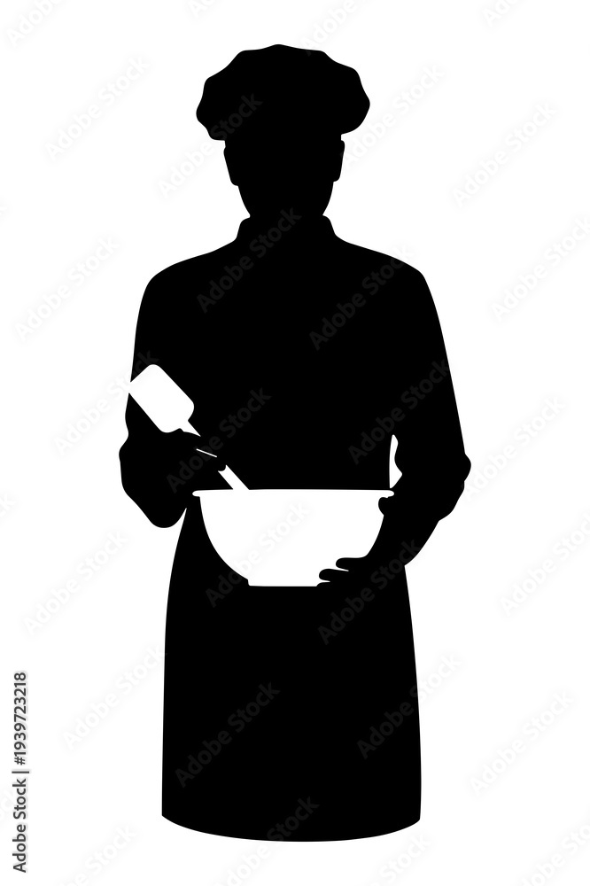 Silhouette vector graphic of a chef mixing ingredients in a white bowl #1939723218