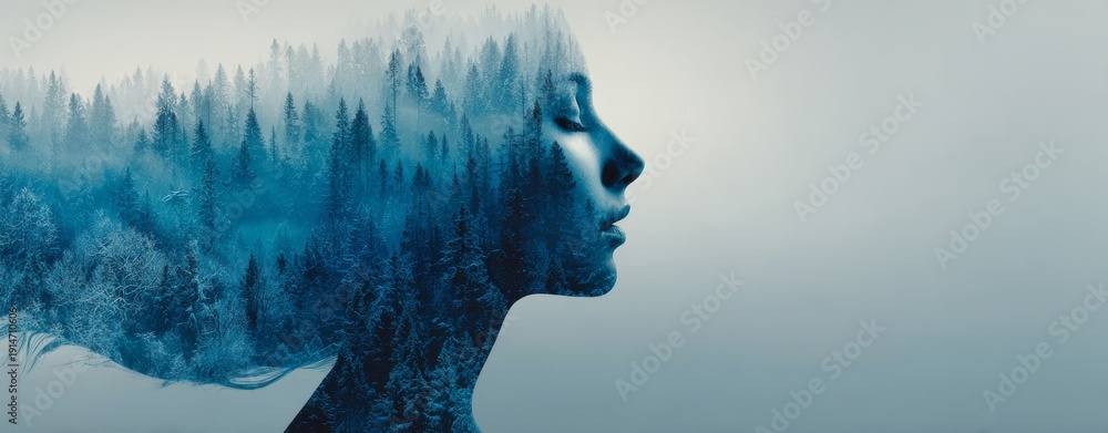 Silhouette woman, forest double exposure, mind, nature #1914710606