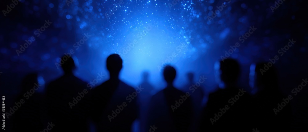 Silhouetted crowd watching blue light show, people, group, concert, audience, performance, dark, night, party #1555394633
