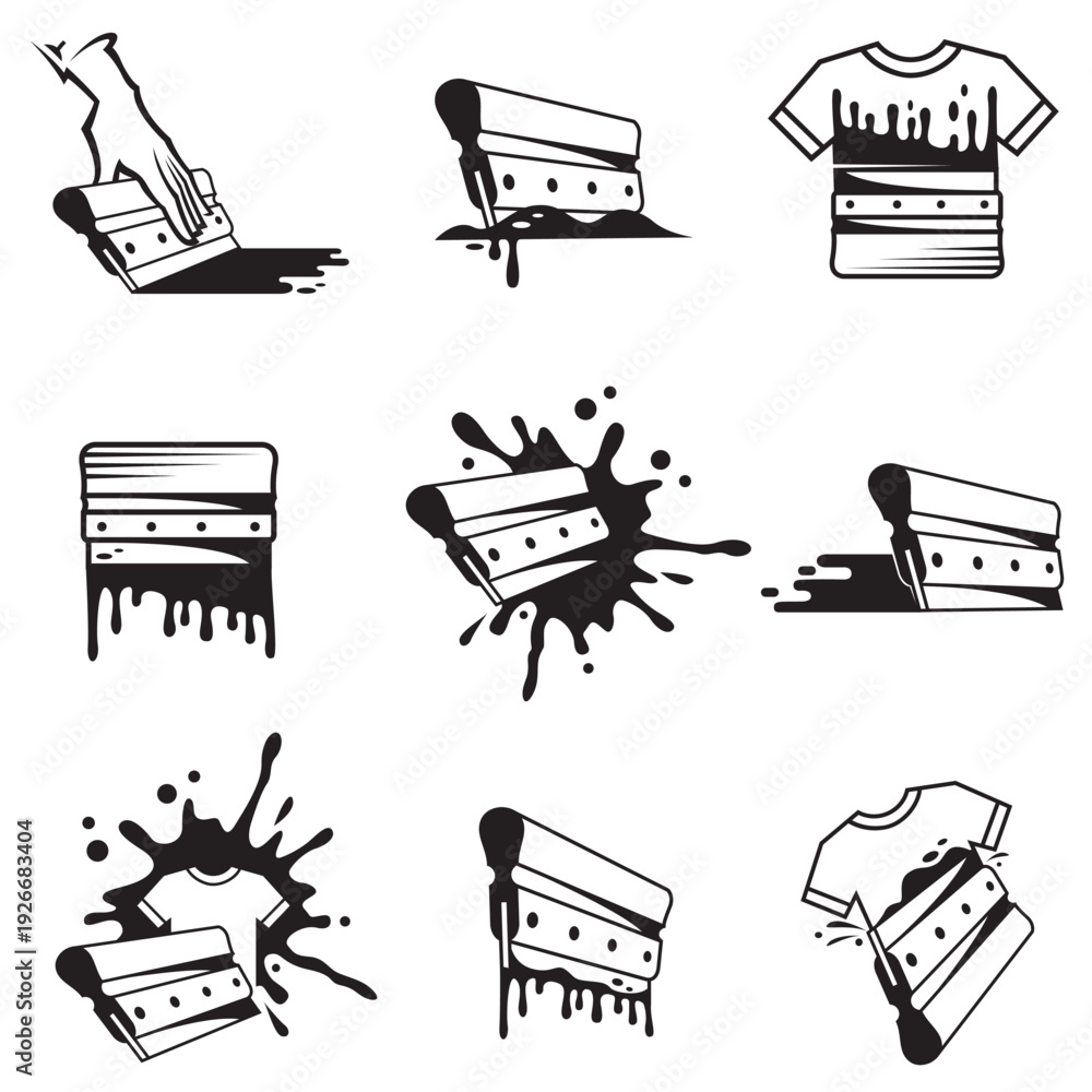 silk screen printing icons with squeegee isolated on white background #1926683404