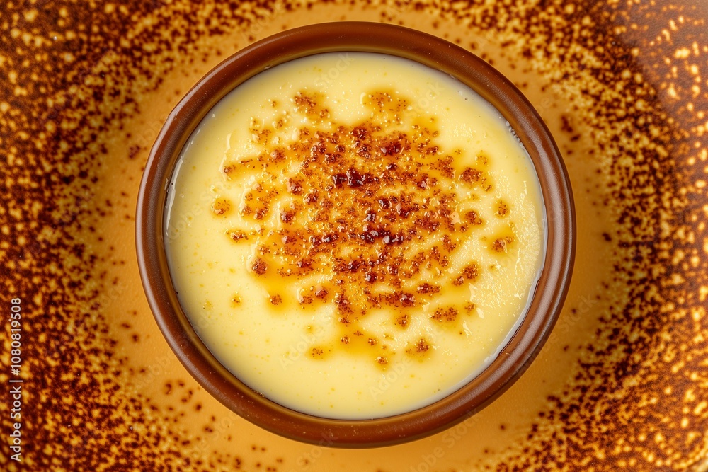 Silky Crème Brûlée, Capturing Glossy Caramelized Top and Luxurious Custard Texture in a Classic Dessert. Suitable for Restaurant Menus, Dessert Blogs, or Food Photography Showcases. #1080819508