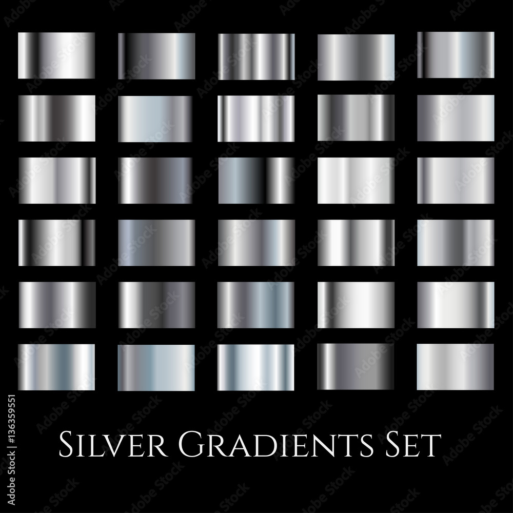 Silver metal gradient set. Gradation design swatches collection #136359551