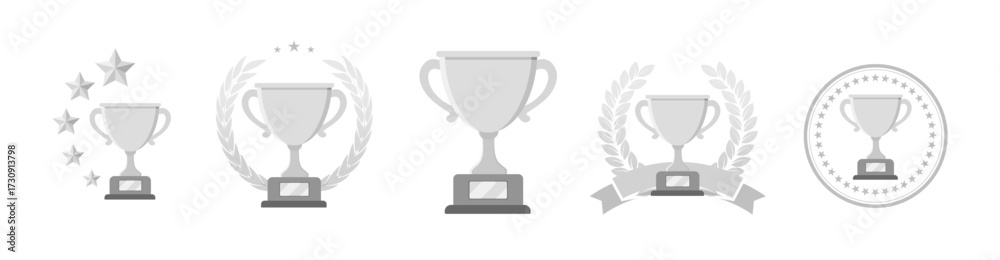 Silver trophy cup icon set. Award medals and badges. Winner symbol vector illustration #1730913798