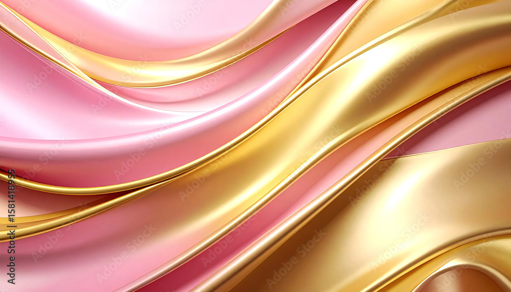 金とピンクの色を使用したシンプルで抽象的な流線型の背景。Simple abstract streamlined background in gold and pink colors. #1581418955