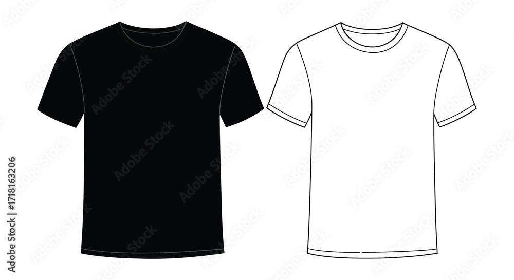 Simple illustration of a black and white crew neck t shirt design mockup #1718163206