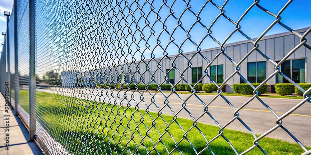 Simple metal chain link fence for industrial park security #995992541