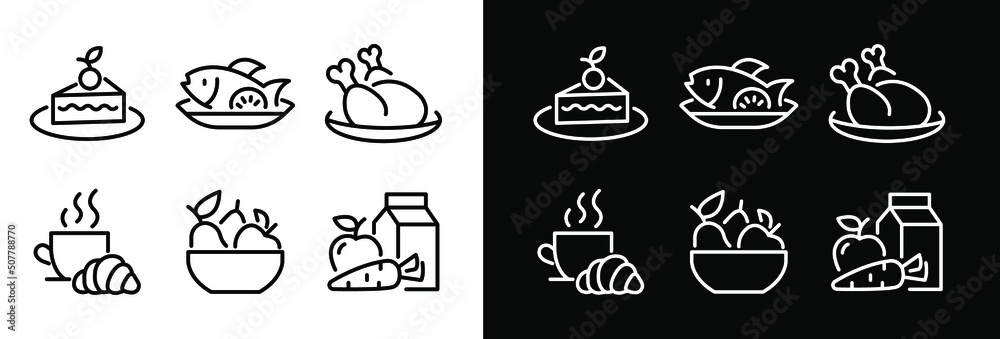 Simple Set of Meal Related Vector Line Icons. Contains such Icons as Fruit Basket, #507788770