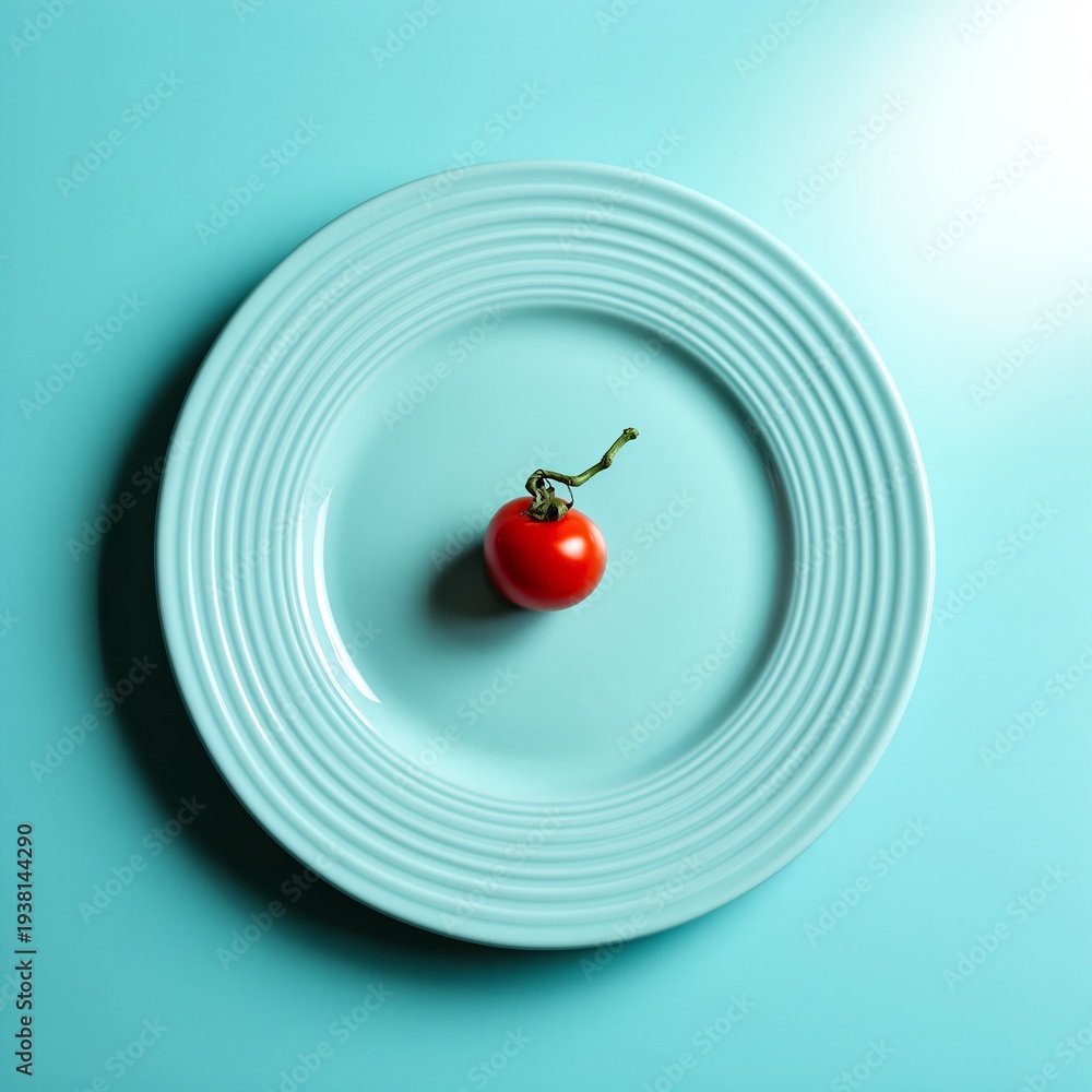 Single cherry tomato on turquoise plate #1938144290