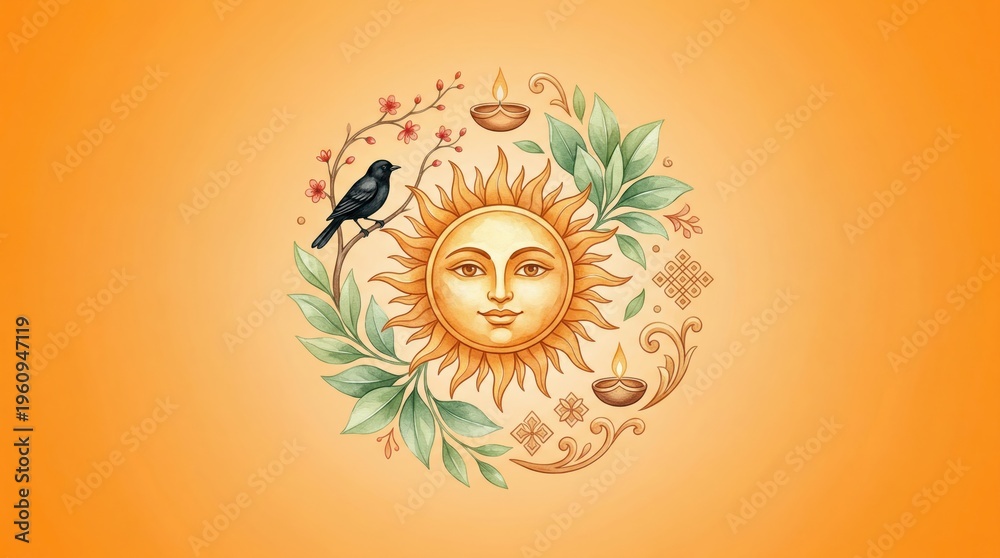 Sinhala and Tamil New Year watercolor card illustration. #1960947119