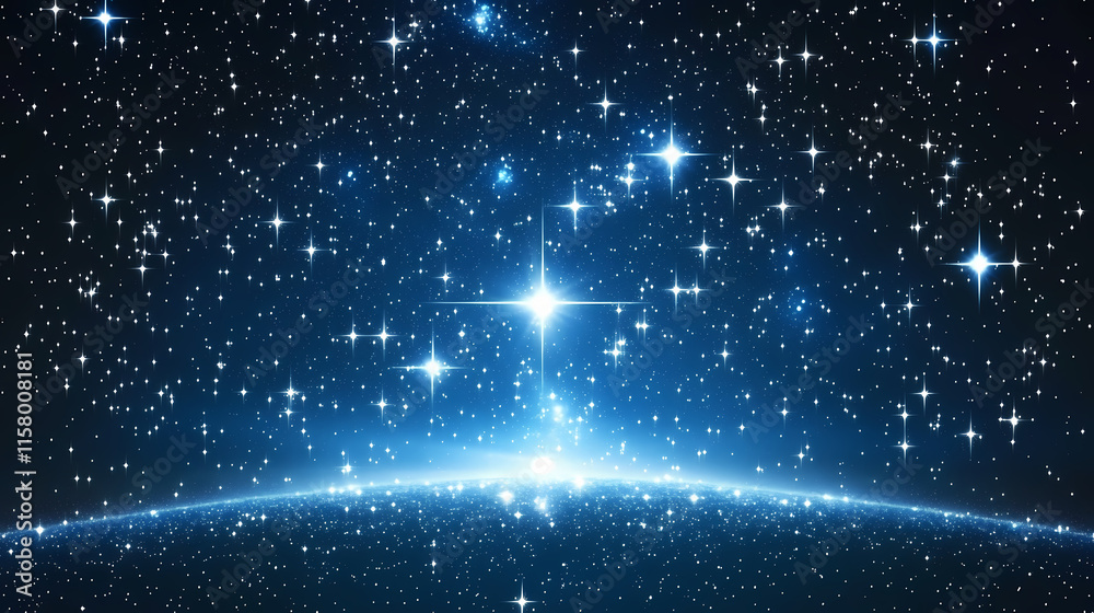 Sky stars, starry night blue starlight shine in dark space universe background. twinkling and blinking stars in sky with glimmer shine of galaxy, seamless loop. Starlit. Illustration #1158008181