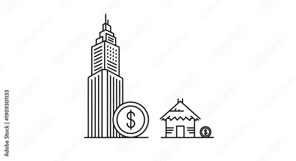 Skyscraper vs Hut: Wealth Inequality, Economic Disparity, Financial Growth, Investment Comparison #1909301133