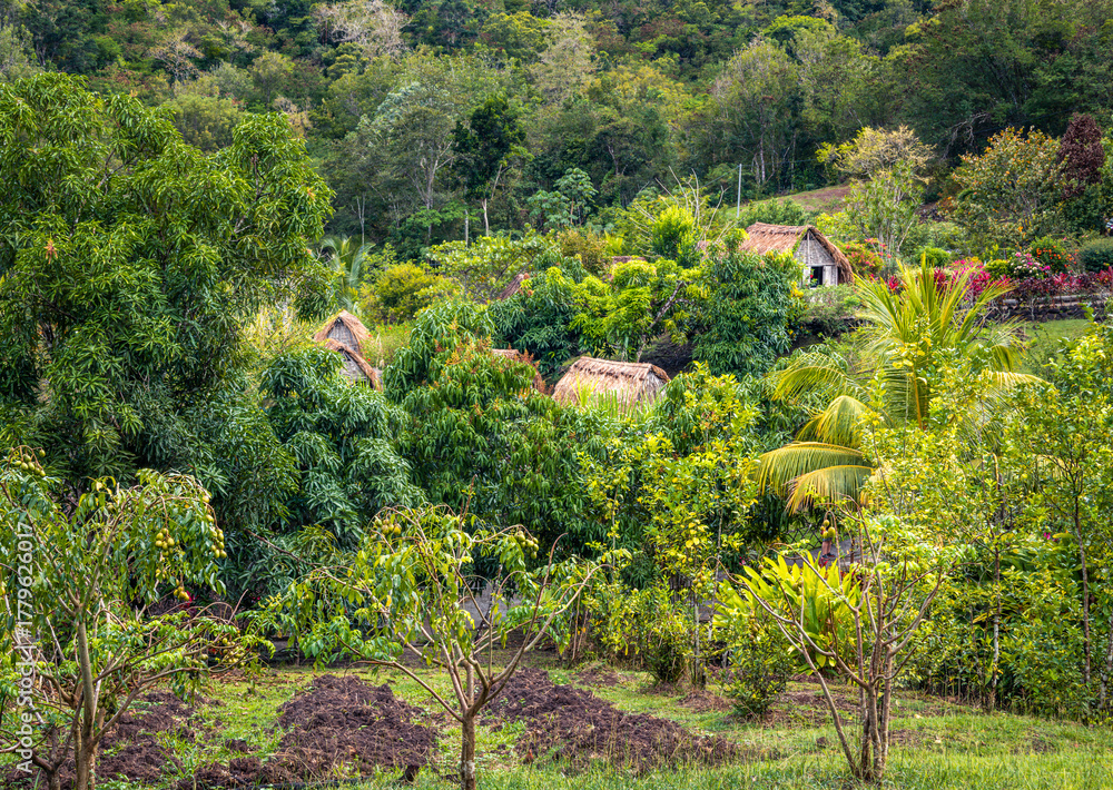 Slave huts replicas on a plantation near Les Trois Ilets in Martinique, France. #1779626017
