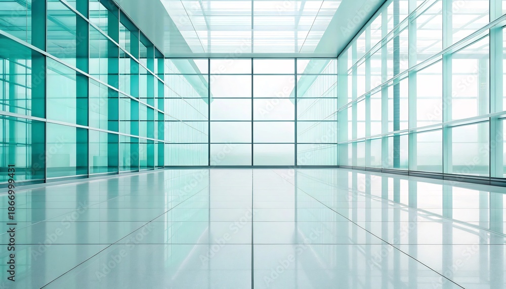 Sleek Architectural Interior Featuring Expansive Glass Panels and Polished Reflective Surfaces, Ideal for Modern Business Settings #1866999431