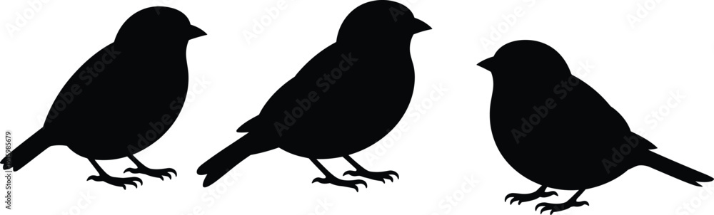Small bird silhouettes vector set, black songbird standing poses collection, wildlife nature bird shapes isolated, flat vector illustration #1945985679