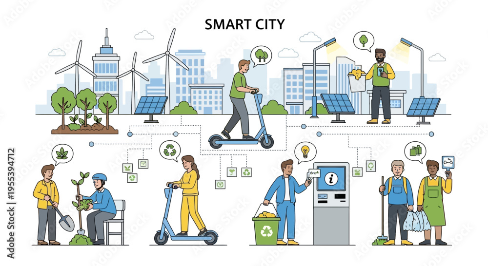 Smart City Technology: Sustainable Urban Living with Green Energy and Eco-Friendly Transport #1955394712