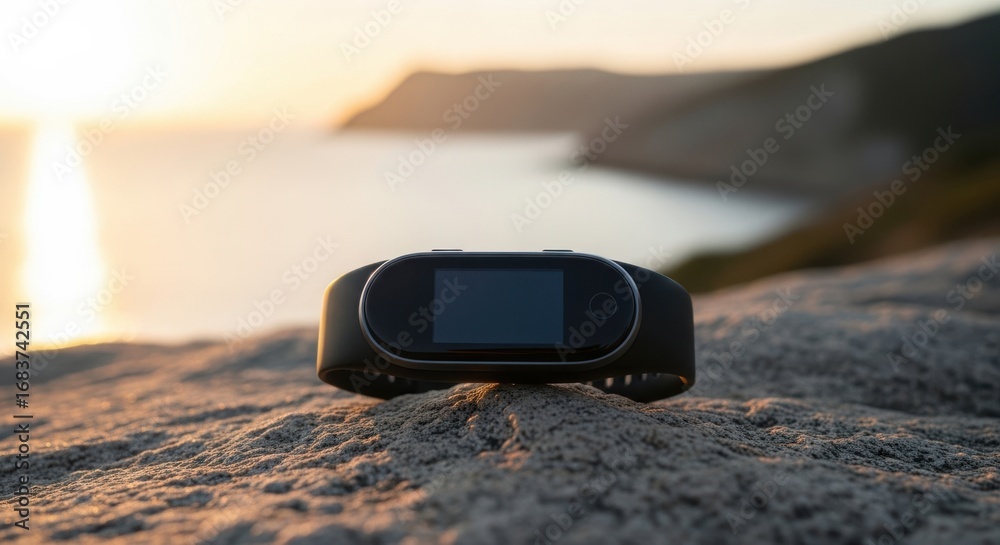Smart Fitness Tracker Monitoring Health Outdoors by the Sea #1683742551