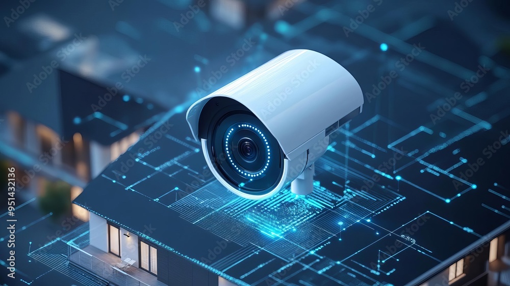 Smart home security, AI-controlled surveillance system, 3D illustration #951432136