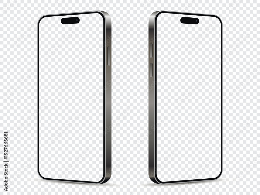 Smartphones with empty transparent screens. Mobile phone isolated on transparent background #1927665681