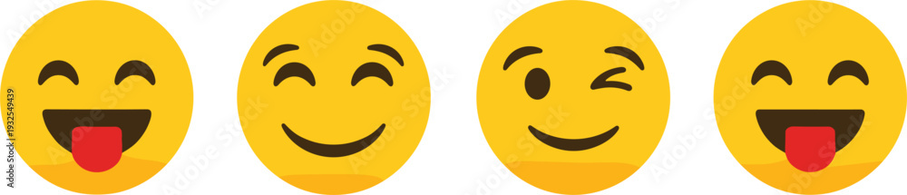 Smiling emoji faces set with happy wink tongue expressions yellow emoticon vector illustration collection #1932549439