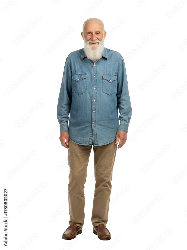 Smiling senior man with a long white beard stands in full view. #1730802027