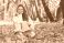 Smiling young woman sits in the autumn foliage on the ground of the forest with the yellow leaves #1646107975