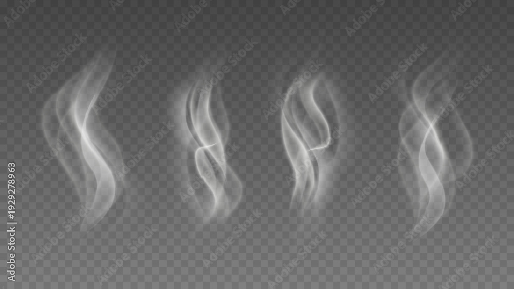 Smoke isolated on transparent background. Vector fog, vapor set. #1929278963