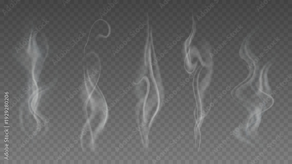 Smoke isolated on transparent background. Vector fog, vapor set. #1929280206