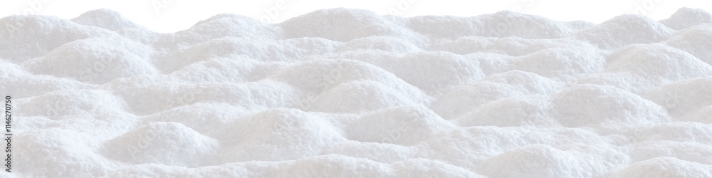 Snow-covered landscape with soft, fluffy mounds of snow, on transparent background. Ideal for use as footer in winter-themed designs, digital art, holiday promotions, seasonal graphic projects. 3D. #1146270750