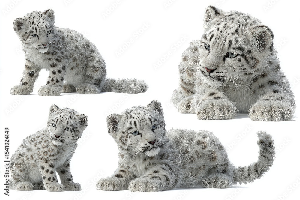 Snow Leopard Cubs, Fluffy Spotted Fur and Expressive Features isolated on white background #1541024149