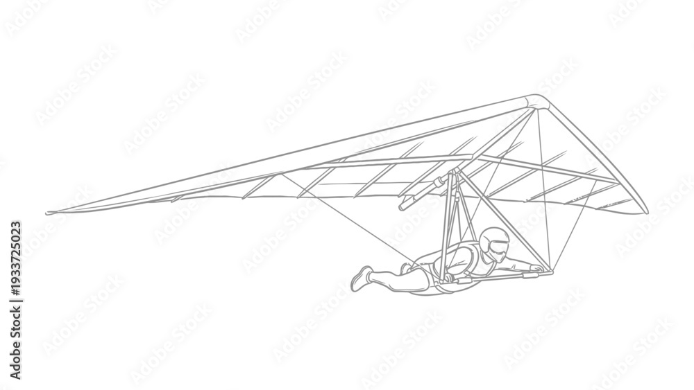 Soaring on the Breeze: An outlined drawing portrays a daring individual gliding through the atmosphere, strapped to a hang glider and ready to conquer the sky. #1933725023