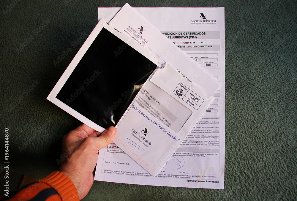 Sobre negro de Hacienda AEAT con notificación y carta administración multa, infracción e inspección delito fiscal #1964144870