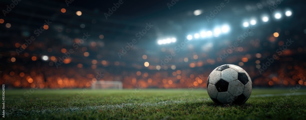 Soccer ball on a field at night, stadium lights #1530626925