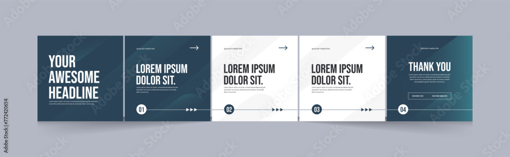 Social media carousel template, microblog five page square post for Instagram and linkedin, clean, modern, minimal, design, EPS vector illustration #772420654