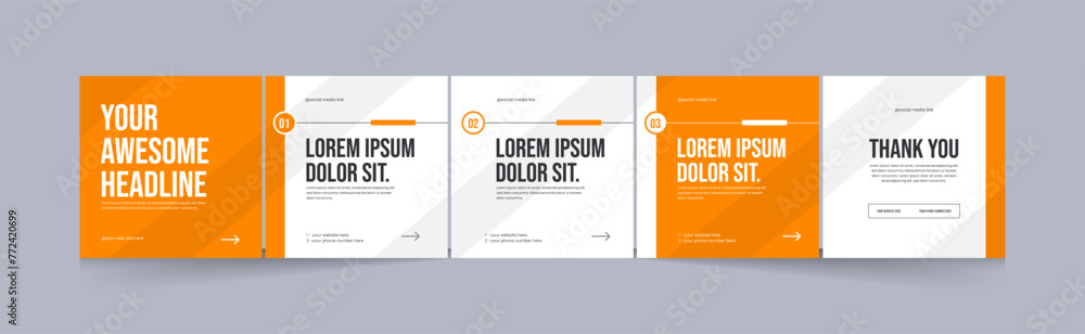 Social media carousel template, microblog five page square post for Instagram and linkedin, clean, modern, minimal, design, EPS vector illustration #772420699