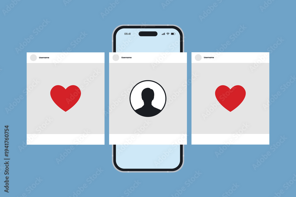 Social media post interface, social media audience engagement, Digital marketing on smartphone. Vector Illustration #1941760754