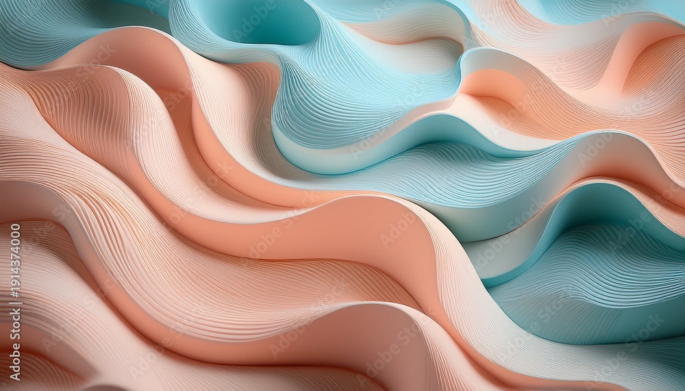 Soft Abstract Shapes In Peach Cream And Light Blue #1914374000