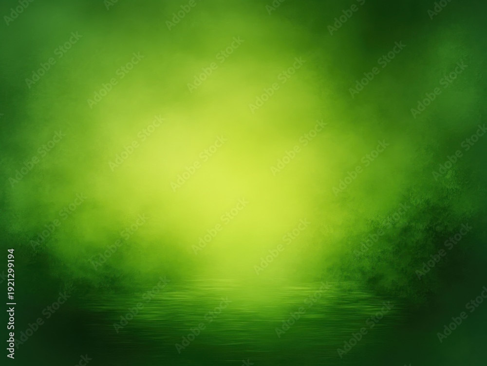 soft green mist and haze over calm reflective water with glowing center, tranquil and mysterious mood #1921299194
