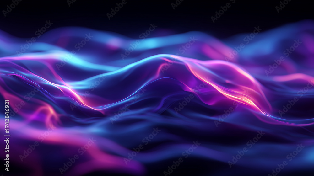 Soft luminous waves create a serene digital landscape that conveys calm interaction and intuitive interfaces while representing human centered technology and elegant information flow. #1742846921