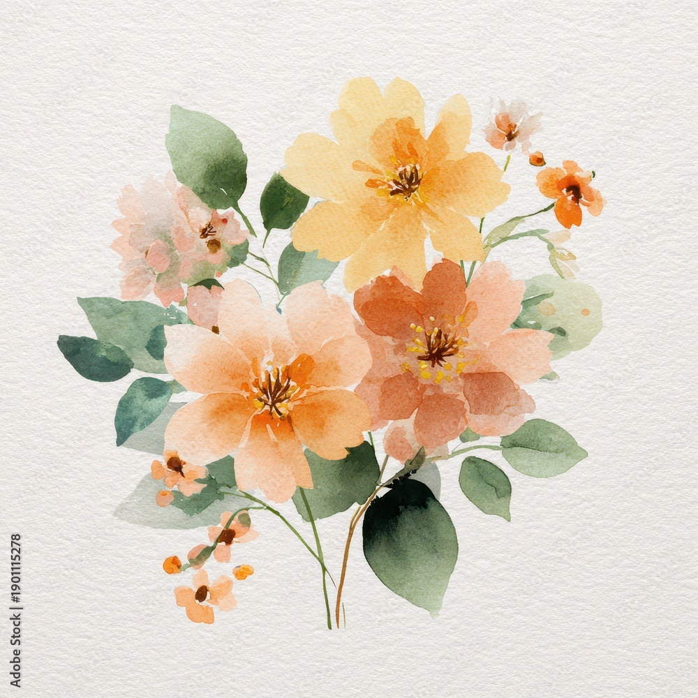 Soft orange blossoms watercolor artwork with airy composition and natural texture #1901115278