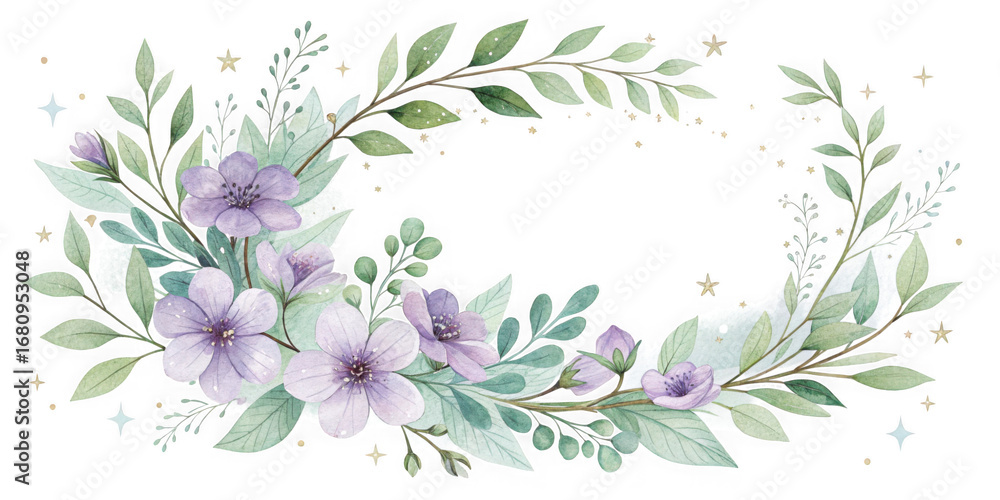 Soft pastel floral wreath with delicate leaves and subtle sparkle accents transparent background #1680953048