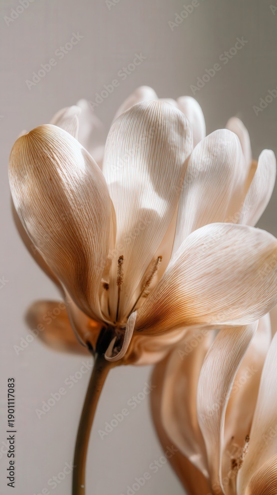 Soft Petals' Embrace: Capturing the intricate details of a delicate flower with soft, warm lighting that highlights its intricate details, creating a feeling of gentle beauty. #1901117083