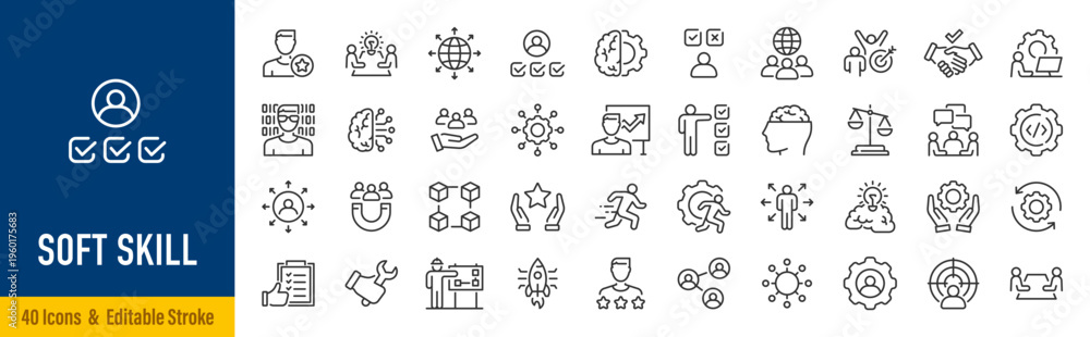 Soft skills web icons in line style. Teamwork, creativity, communication, problem-solving, management, collection. Vector illustration. #1960175683