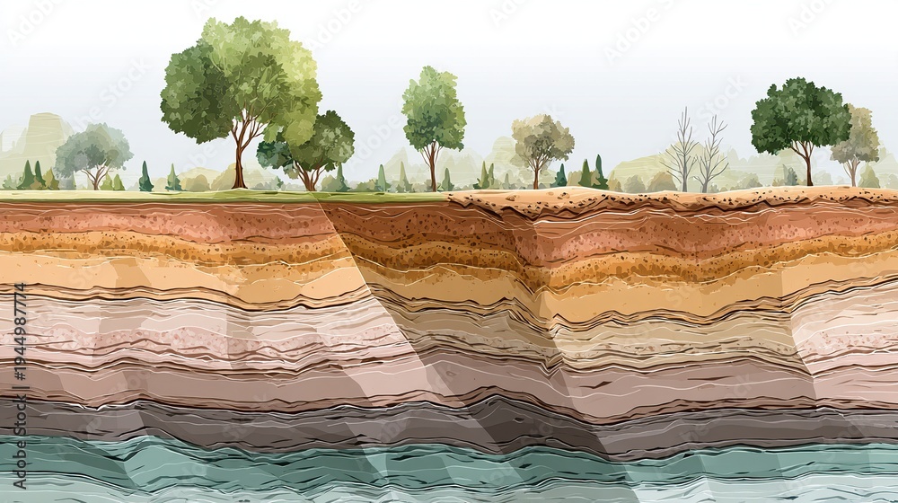 Soil profile with visible strata and natural layers #1944987774