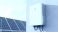 Solar energy system components, solar panels generating electricity, and smart inverter mounted on wall, clean power generation, sustainable energy, renewable power technology. #1917521908
