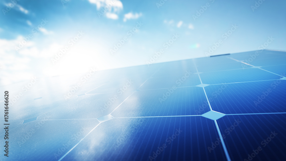Solar panel absorbing sunlight to generate clean energy, representing sustainable power and environmental conservation. 3d render #1761646620