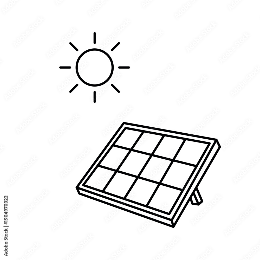 Solar Panel and Sun Icon Line Art Vector Illustration. Editable Stroke. #1904970022