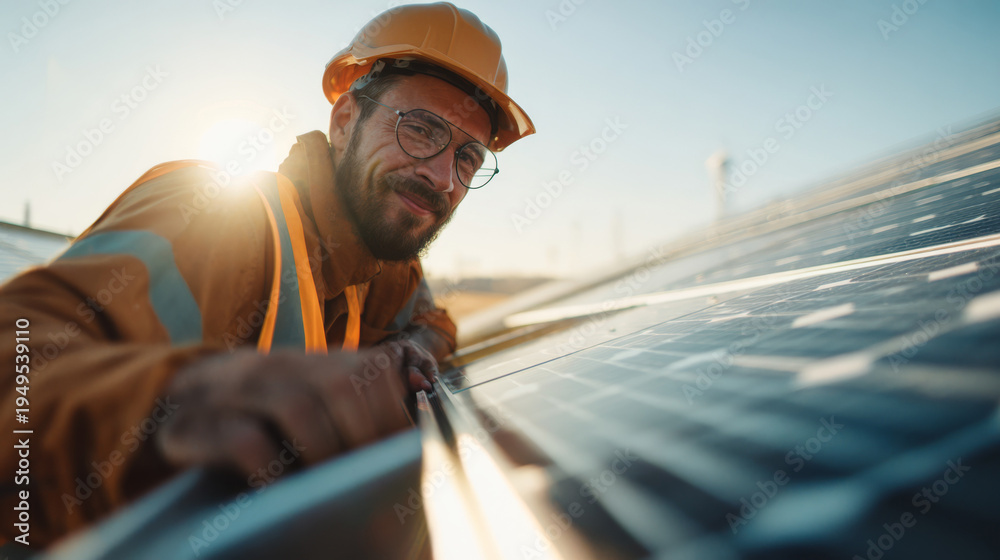Solar Panel technician in a protective helmet #1949539110