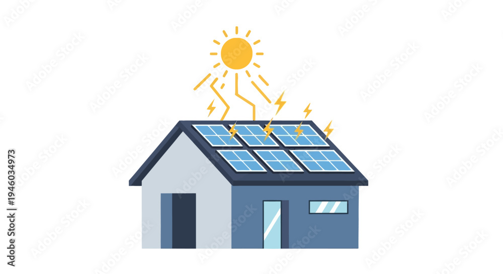 Solar Panels on House Roof Generating Electricity from Sunlight #1946034973