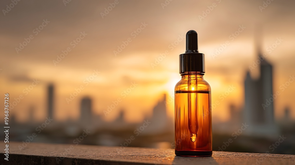 Solitary street lamp glowing through a foggy urban landscape at dusk #1968767126